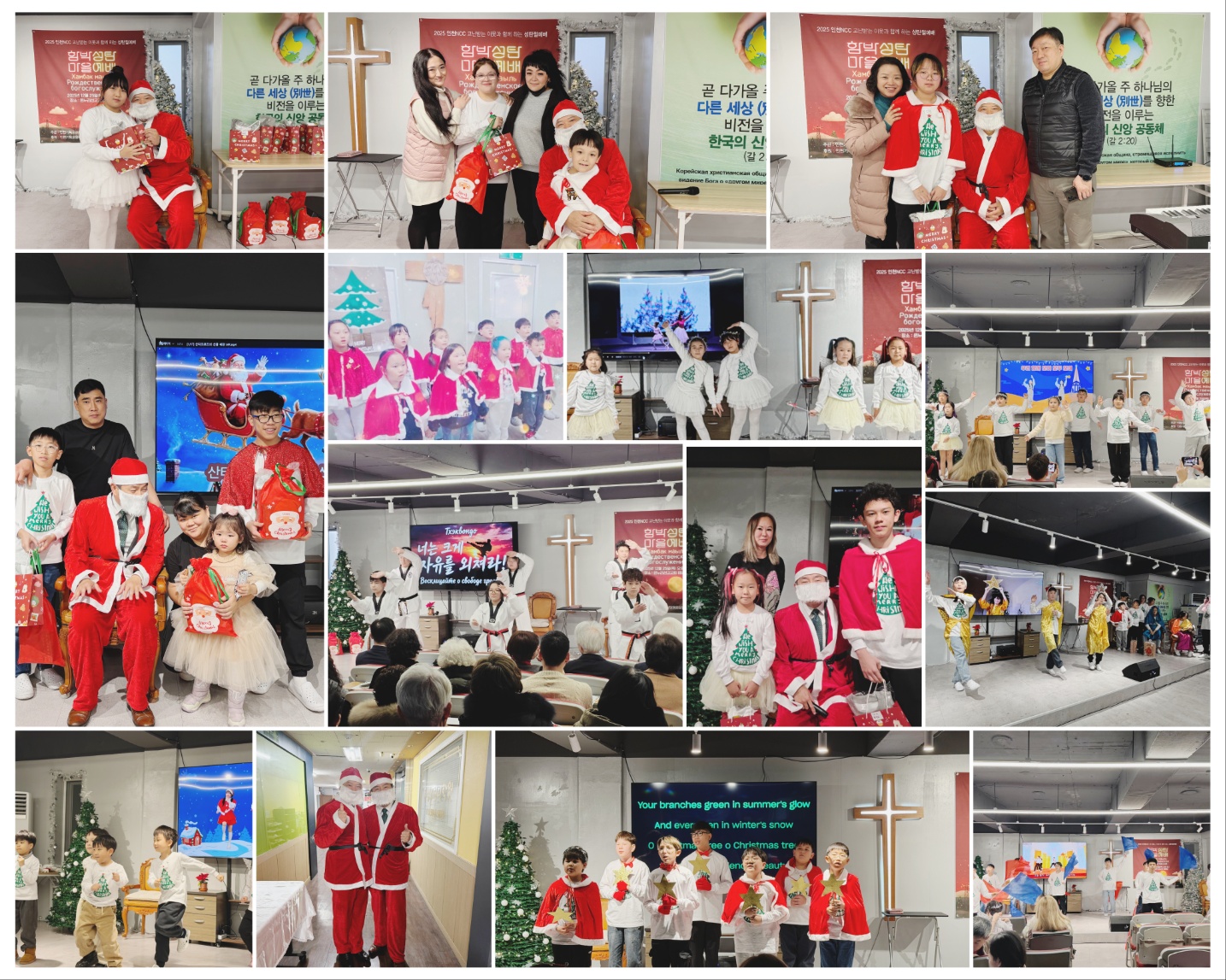 산타클로스의 선물 순서로 시작한 주일학교를 위한 크리스마스 발표회는 부모님들의 환호와 열심히 함께 하는 우리 주일학교 어린이들의 놀라운 공연으로 예수님의 생일을 축하했습니다!