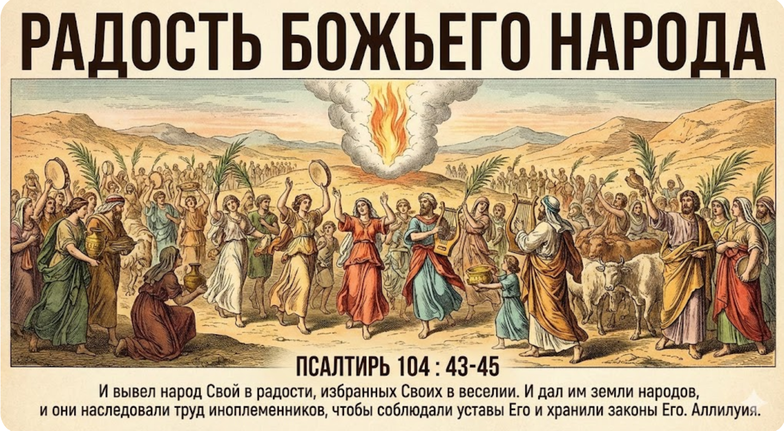 43 и вывел народ Свой в радости, избранных Своих в веселии,